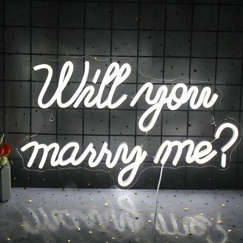 No MOQ personalizado Will You Marry Me Letrero de neón Blanco cálido Propuesta Decoraciones DE BODA Signo Compromiso Romántico Letrero de neón Arte de pared